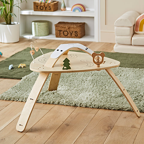 The Little Hoppa 3 in 1 is a super stylish, multi-functional toy that grows with your family. Our system has three activity stages that take you from newborn to pre-school: a multi-functional baby gym for newborns, a super stylish baby bouncer and a children’s activity table. Made of sustainable material wood and with a high quality finish, it offers a one-of-a-kind alternative to plastic toys.