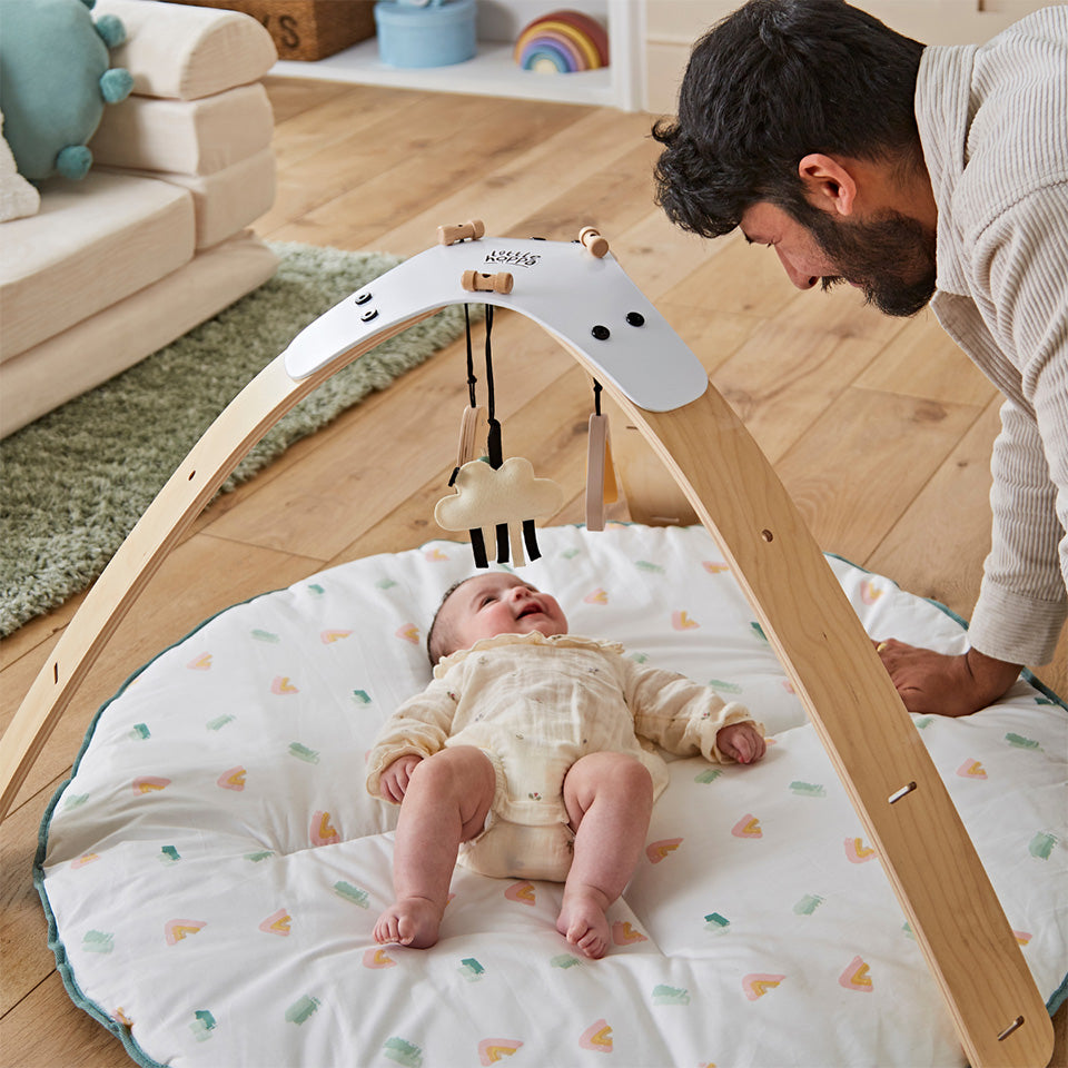 The Little Hoppa Baby Gym is designed to promote tummy time and sensory exploration, whilst elevating any stylish modern home. The play mat is crafted from a washable, cotton fabric, with super plush padding for baby’s comfort.